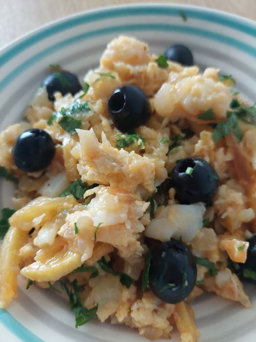 «El bacalao, debido a su facilidad de conservación en salazón, siempre ha estado presente en las mesas castellana y portuguesa. Del país vecino se ha importado el bacalao a Brás, ya habitual en todos los restaurantes de Ciudad Rodrigo, siguiendo en esta zona el modelo del norte de Portugal, en el que las migas de bacalao se desalan y se les añade cebolla, patata y huevo revuelto» (Apartado de gastronomía, antigua web CiudadRodrigo.net)