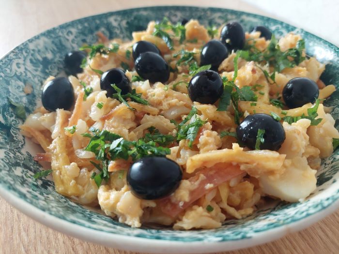 RECETA DE BACALAO A BRÁS («bacalhau à Brás» o «bacalhau dourado»)